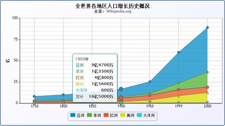 | [Chart:Area&Areaspline]?????????????2014-02-19 16:43:15by ??? 如下图是全世界各地区人口增长历史概况,考虑以下几个重点: