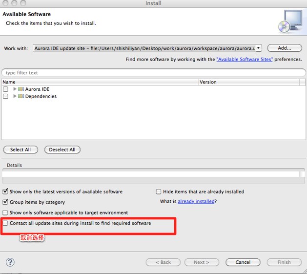 关于ER-Master和AmaterasERD的相关说明请参考相关的网站。 ALL in One 方式只在IDE更新较大时需要重新下载,一般情况下,我们通过替换dropins的方式来进行更新。这个方式不是自动的需要手动下载最新版本的dropins替换。IDE研发人员将保证通过dropins和auto update方式获得的IDE为最新版IDE。 dropins是eclipse在3.4以后提供了一种新的管理plugin的方式。 顾名思义将plugin扔到里面就可以运行。 不过需要以特定的目录结构 将下面的dropins下载解压后放到您eclipse的dropins目录后,删除eclipse/configuration/org.eclipse.osgi/目录即可。 使用install New Software..功能,完成IDE的安装 输入下载地址http://aurora.hand-china.com/download/uncertain_ide_release/ 不要选择_contact all update sites during install to find required software_选项 已经安装过的可以选择Check for update Demo Attachments |